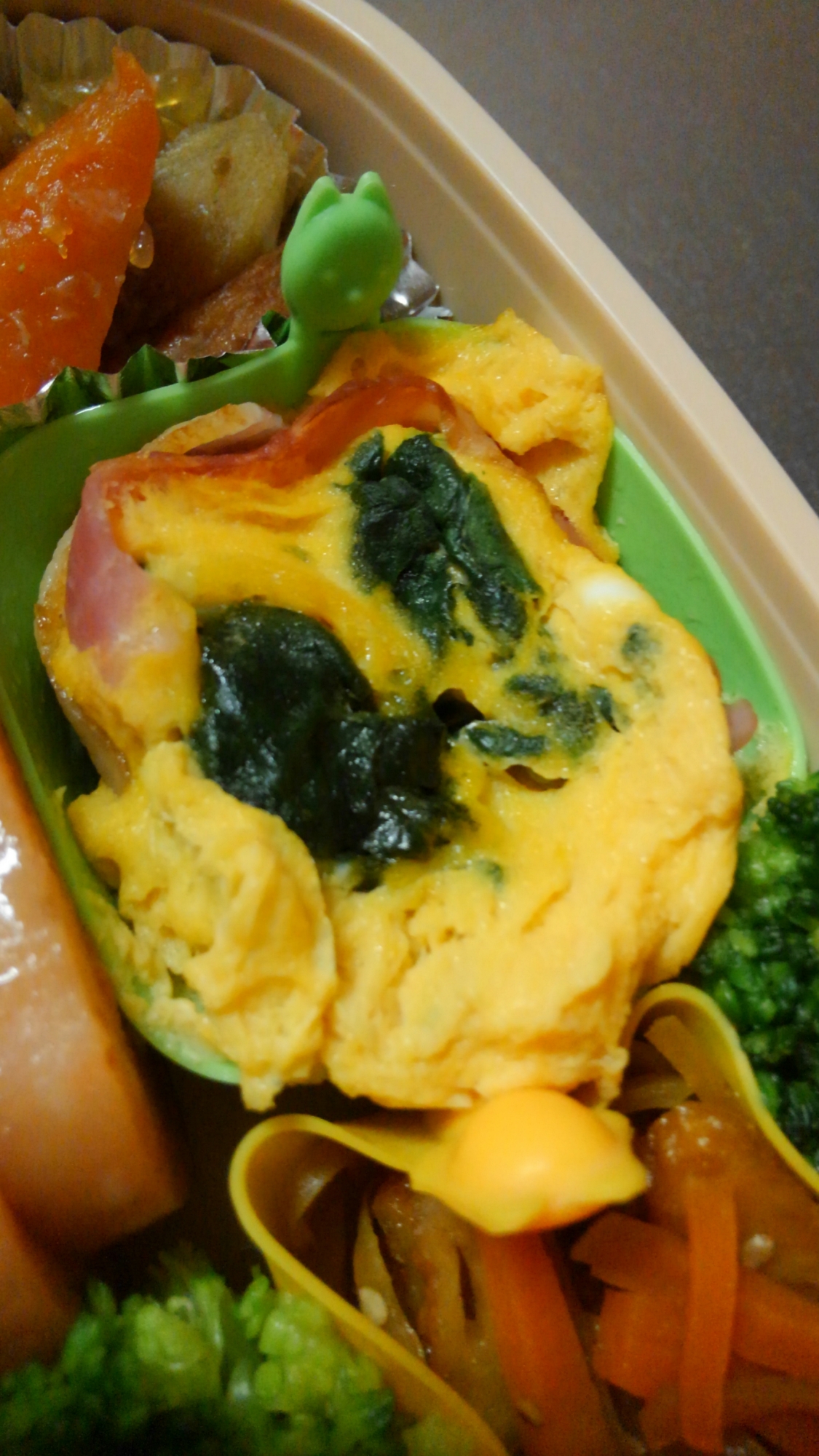 つくりおき食堂まりえ 子供に大人気 簡単ほうれん草のオムレツ レンジで柔らかくしたほうれん草を1センチ幅に切り 卵4個鶏がらスープ砂糖ごま油と一緒に計5分チンして完成 レンジだけでラクに作れます お弁当に緑と黄色の彩りを追加するのにおすすめ